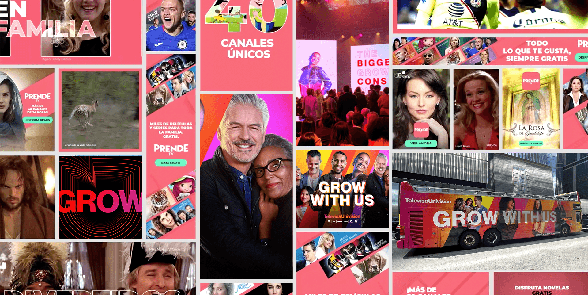 In early 2022, Univision again reached out to Known, requesting we create two videos for the network’s Upfront event. We had previously collaborated on 2021’s Upfront sizzle reel. Using Univision’s tagline “Grow With Us," the work to follow formed a toolkit of elements for a variety of campaigns for the network. In the wake of Univision’s March 2022 merger with Televisa, Mexico’s largest broadcast TV company, we pivoted and included the company’s new logo and look in all materials. Two months later, we delivered a robust B2B campaign for the TelevisaUnivision Upfront event.
