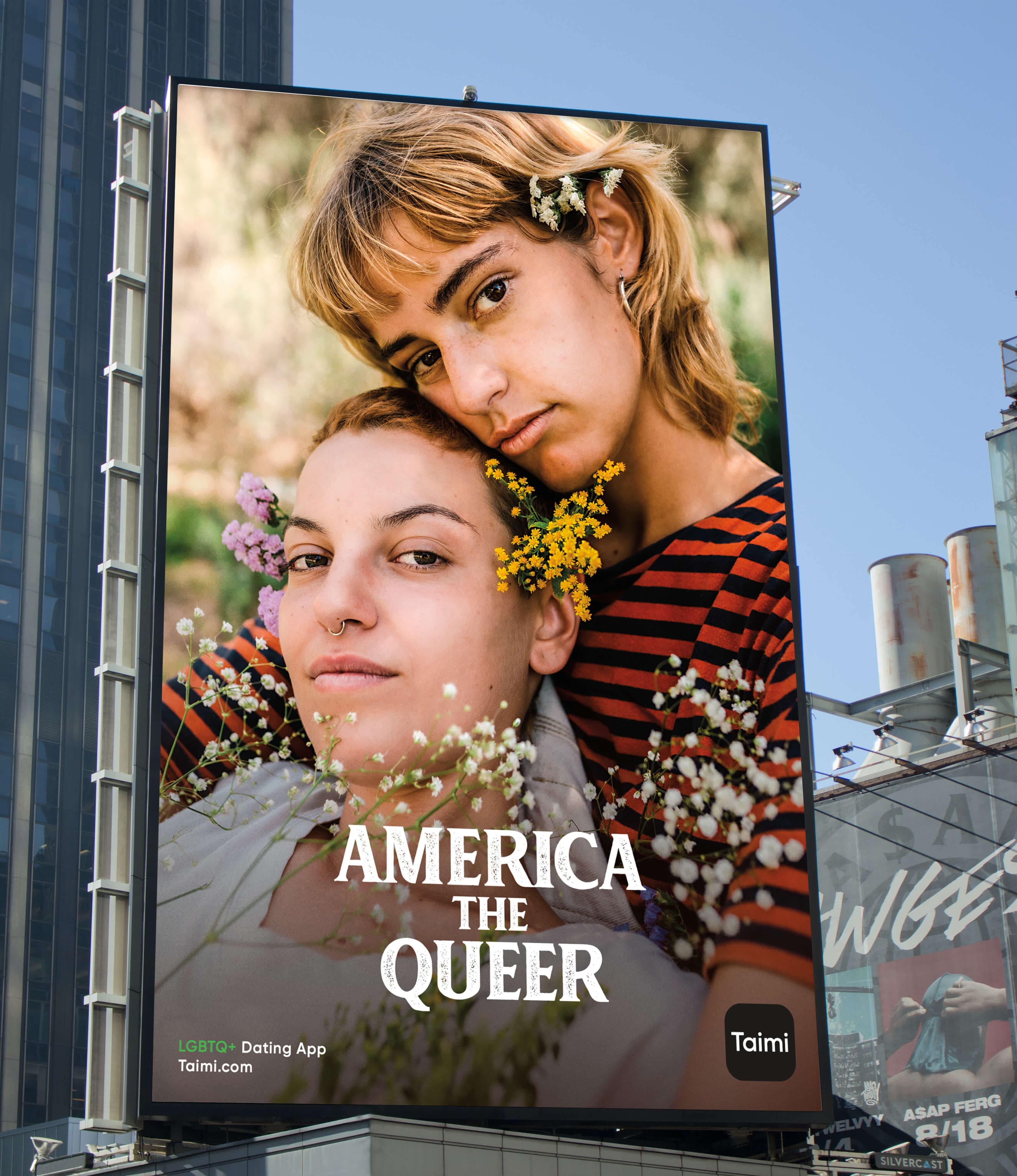 The campaign features provocative photography which portrays American culture in a rainbow light, speaking directly to the target audience of the LGBTQ+ current and prospective Taimi users. The images live on billboards across America, with a message that is impossible to ignore.